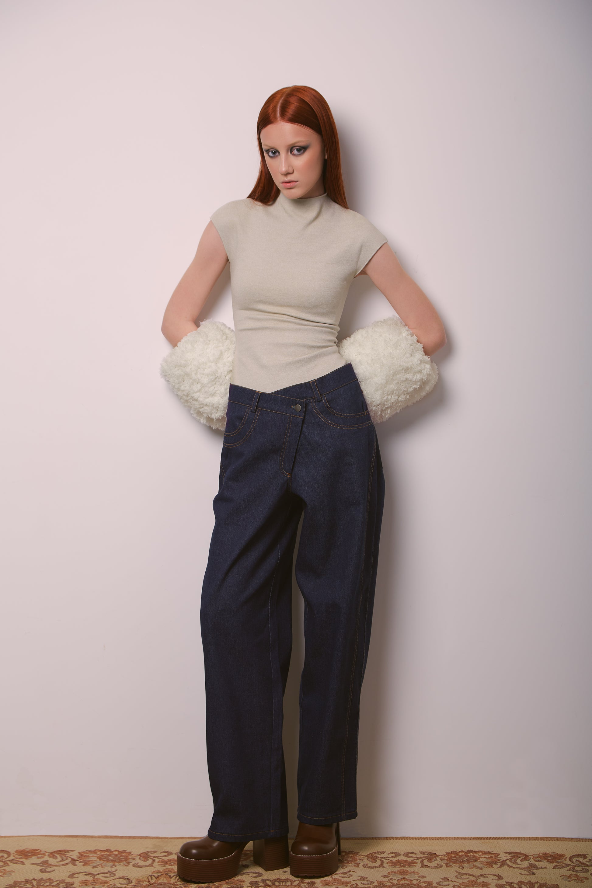 Baggy jeans crafted from premium heavyweight denim with a distinctive front closure. Designed for a relaxed, straight-leg silhouette, they combine a structured fit with effortless style. A timeless piece that works for both casual and elevated looks.