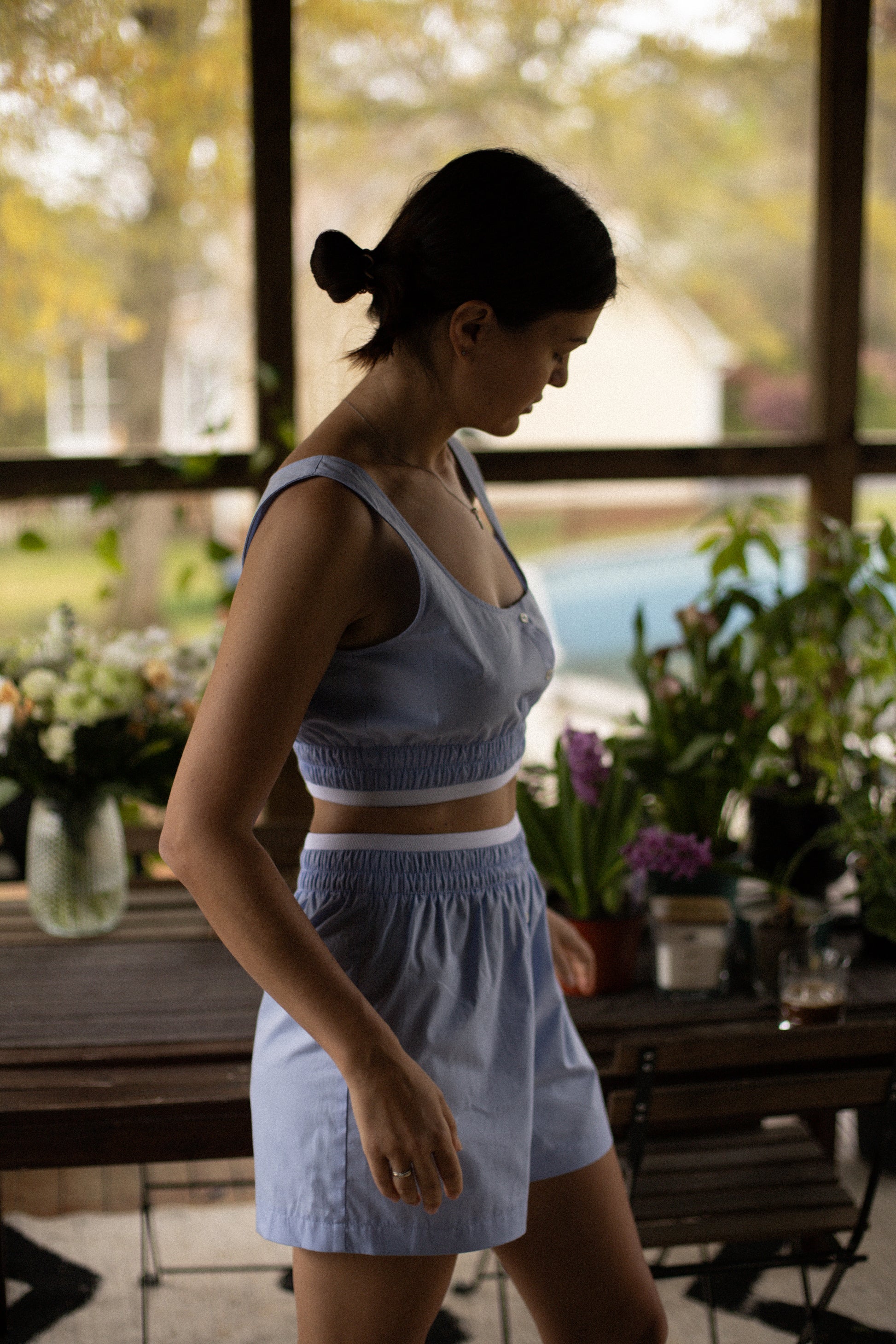 The Maymont Boxer Set brings a fresh twist to everyday style. Inspired by the classic boxer silhouette, the set includes a cropped boxer top with button detail and elastic band, paired with relaxed boxer shorts with a comfortable elastic waist.