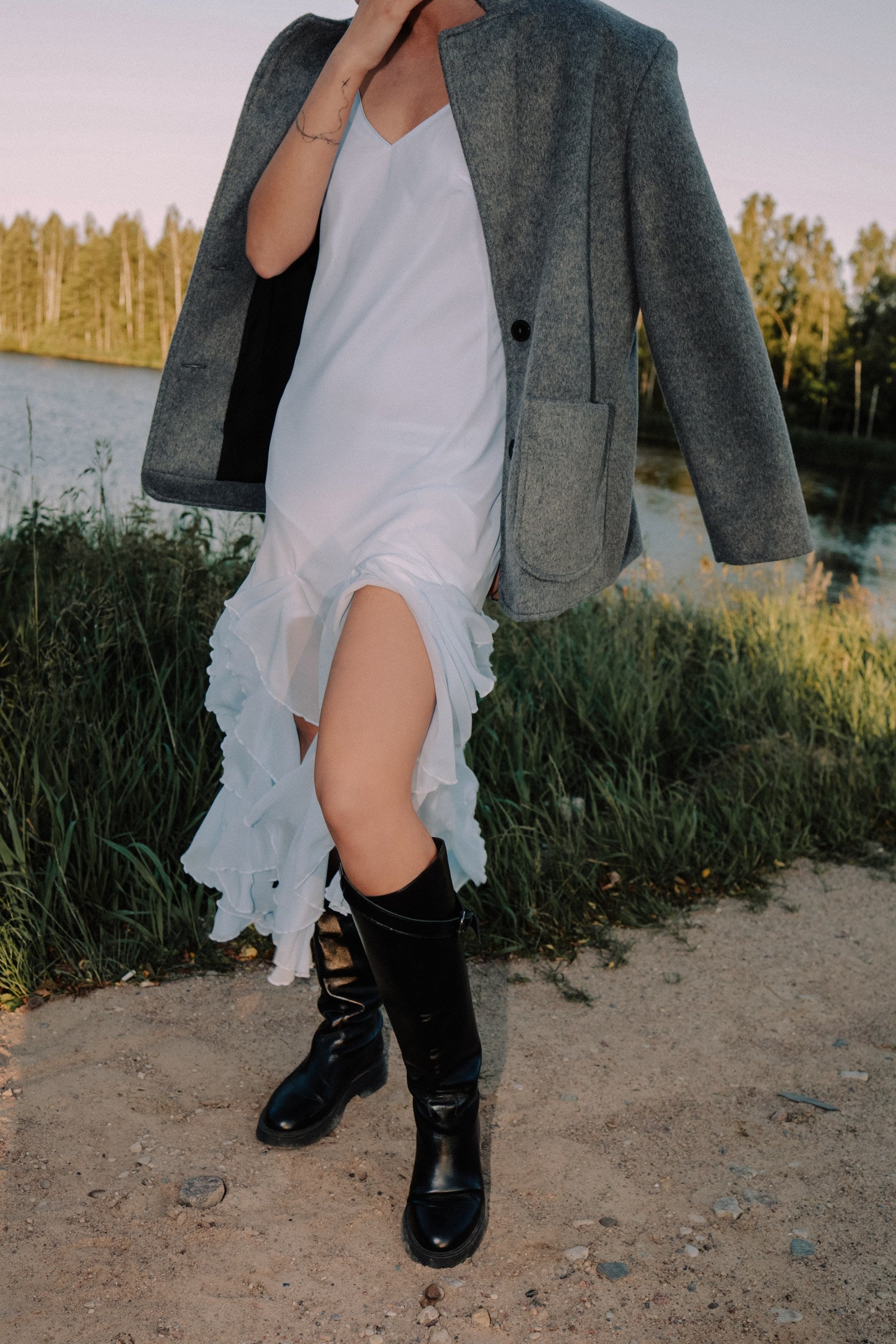 The Double Dress is a bold interpretation of versatility. Two layers — a sleek knit slip and a flowing chiffon dress — are designed to be worn together for a striking, dimensional look, or separately for endless styling possibilities. Lightweight, playful, and refined, this design brings a fresh perspective to modern dressing. Whether paired as one statement piece or styled apart, it offers freedom, individuality, and a sense of effortless chic.