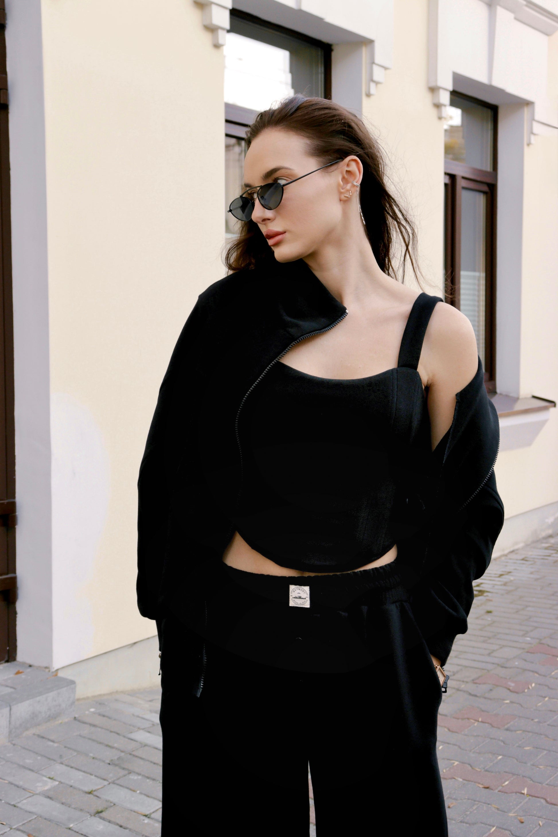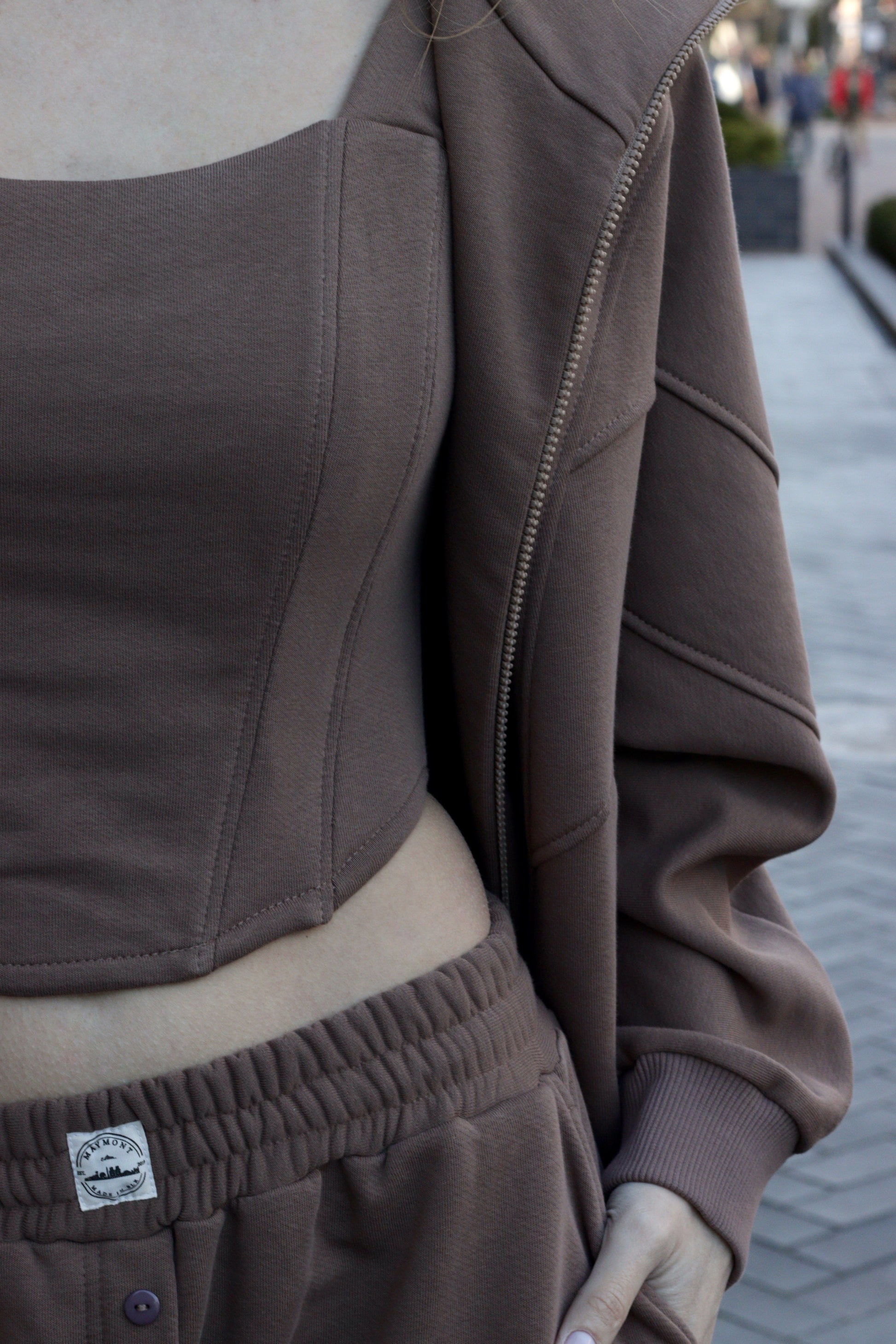 Сrafted from premium cotton. Inspired by classic corsetry, it features structured seams and lace-up details while keeping the softness and ease of loungewear. Perfectly pairs with sweatpants, jeans, or skirts — bringing elegance to casual looks and comfort to evening styling.