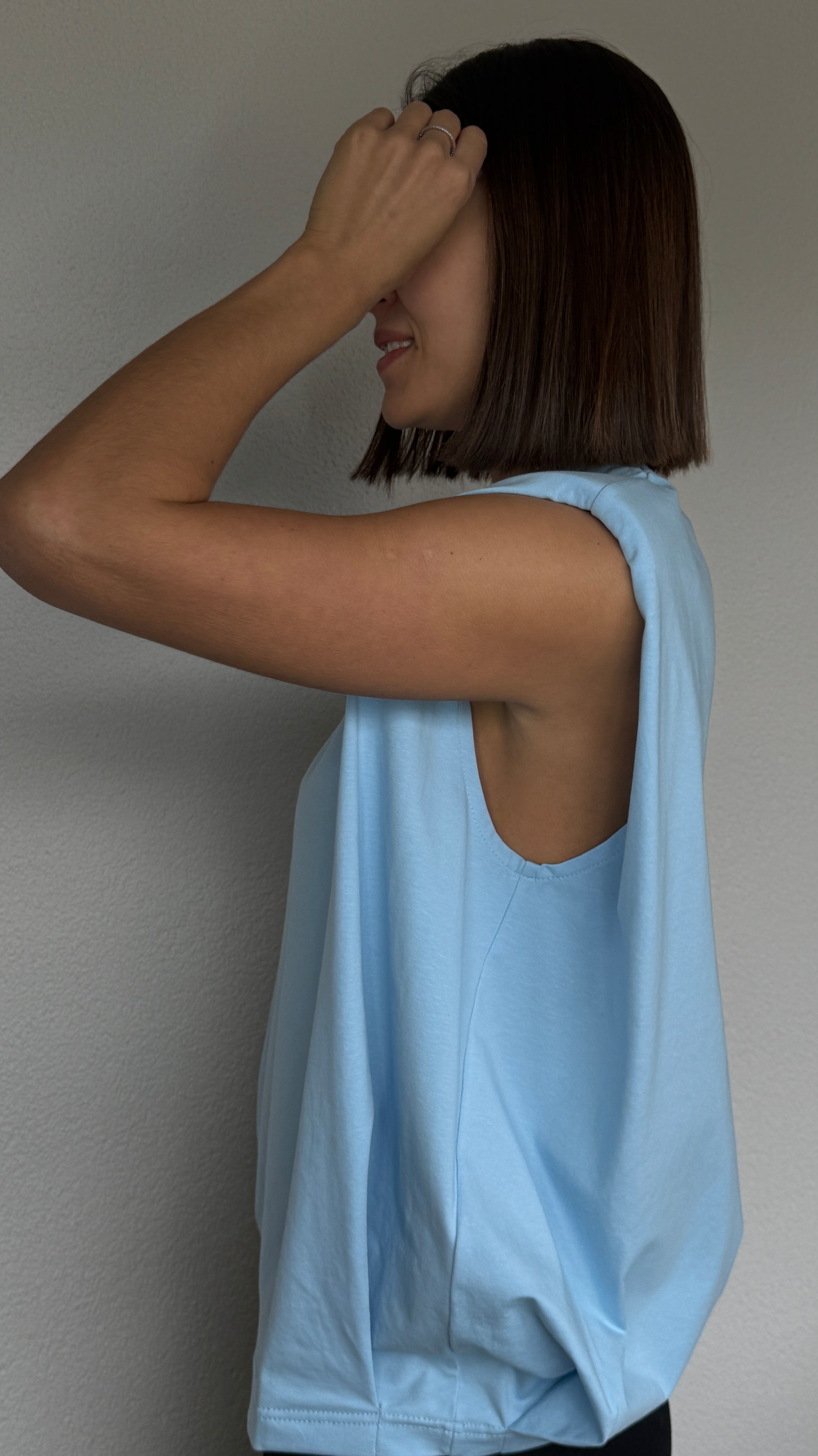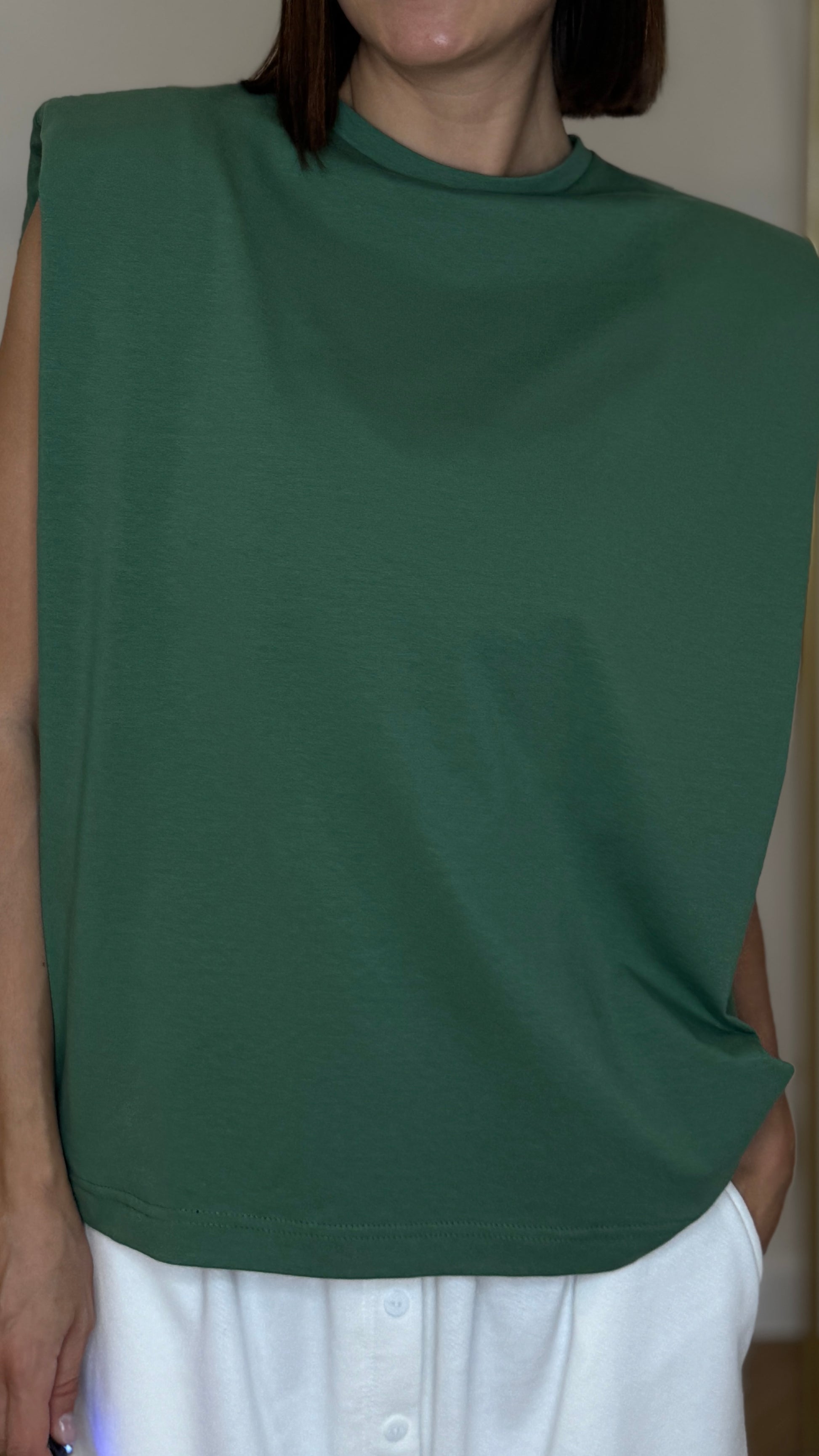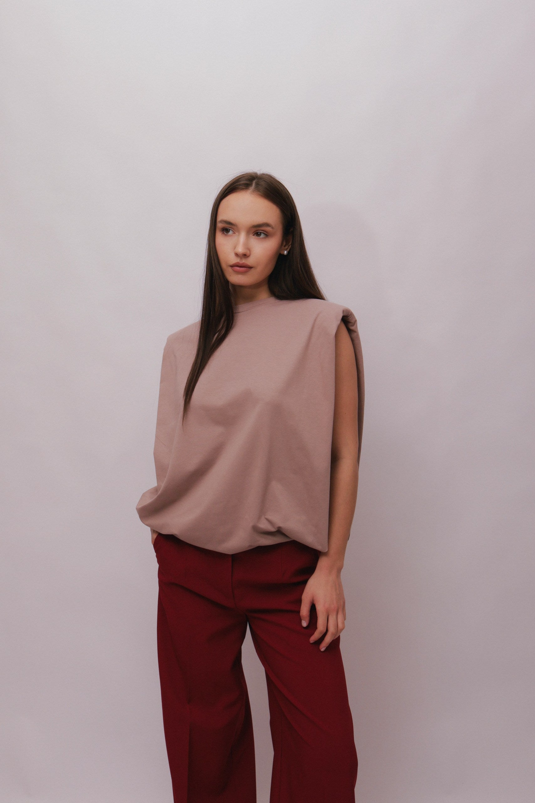 A 100% cotton T-shirt with wide shoulders — clean, modern, and versatile. Available in several colors, it’s an everyday essential that works with jeans, trousers, or skirts.