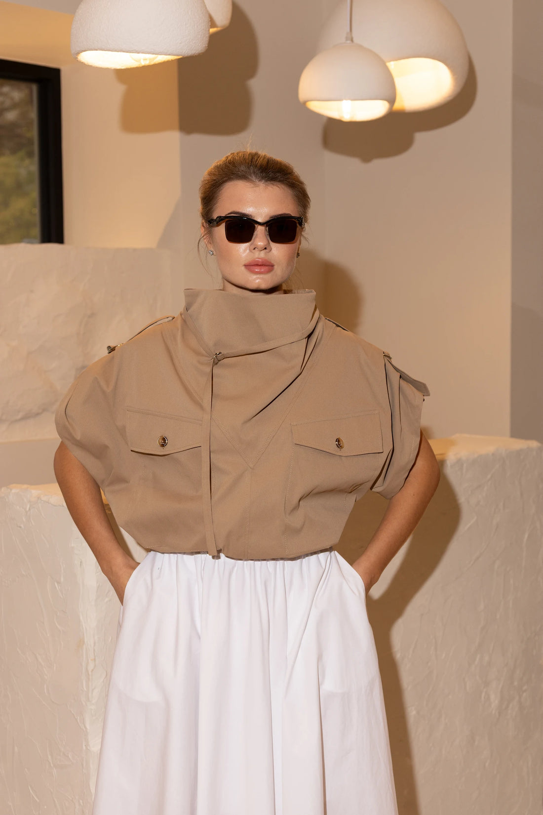 Structured cargo-style top crafted from premium cotton with distinctive utilitarian details. Featuring wide shoulders, oversized...