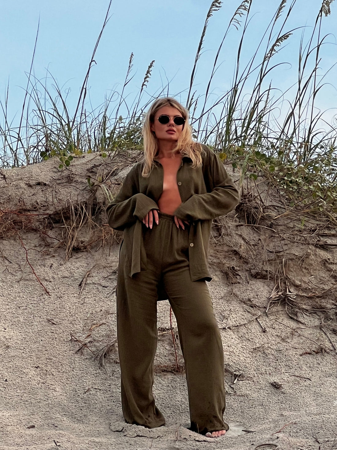 The oversized muslin cotton suit is designed for effortless style and comfort. Crafted from soft,...