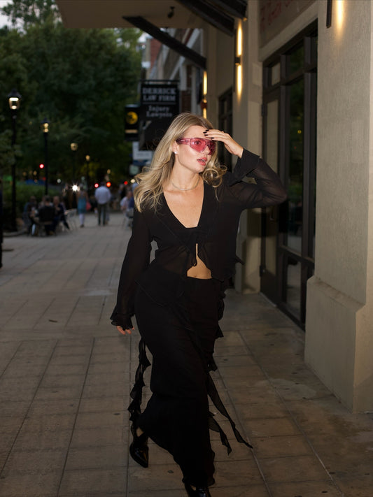 Crafted from premium chiffon, the semi-sheer texture creates a romantic silhouette, while soft draping and...